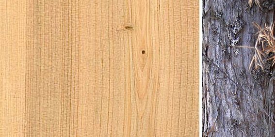 Pintapuu ja sydänpuu eivät erotu toisistaan voimakkaasti; pintapuu on melko ohut, punertavankeltainen; sydänpuu vaalean keltaisenruskea, usein hieman punavioletin sävyinen ja himmeäkiiltoinen