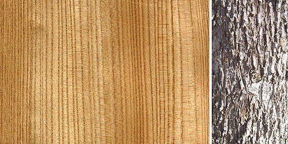 Pintapuu kellertävänvalkoisesta harmaaseen, kapeasta leveään; sydänpuu kirkkaanruskea; vuosilustojen rajat selvät, säteisleikkauksessa ydinsäteet selvästi näkyvissä