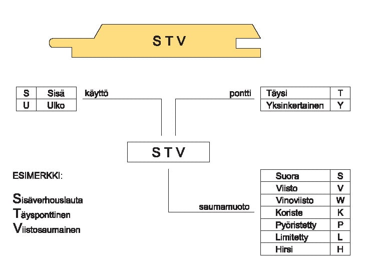 Ulkoverhouslaudat valmistetaan V-laatuluokan sahatavarasta ja