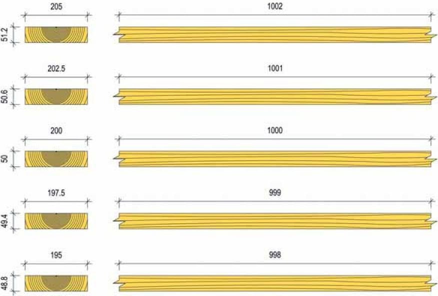 Millimetreinä ilmoitetut mitat (paksuus x leveys x pituus) pätevät 20 %:n kosteudessa (kosteuspitoisuus ilmoitetaan prosentteina puun kuivapainosta). Kosteusprosentin ollessa vähemmän kuin 20 % on otettava huomioon seuraavaa:
