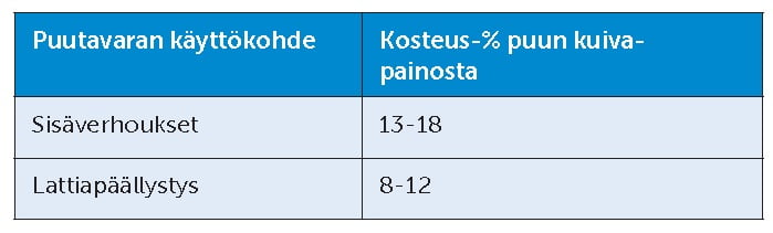 Lämmitettäviin sisätiloihin käytettävän puutavaran