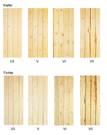 Schnittholz wird nach seinen Qualitätseigenschaften in die folgenden Klassen eingeteilt: