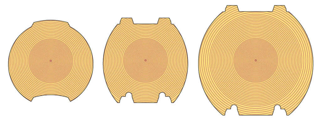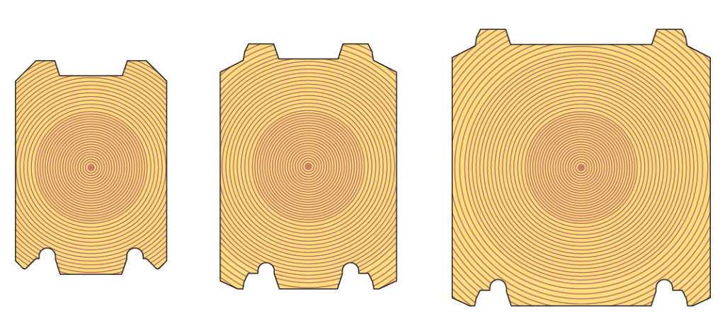 Modern log joints can also be made extremely thin. Length, height and cross section of the logs vary according to manufacturer.