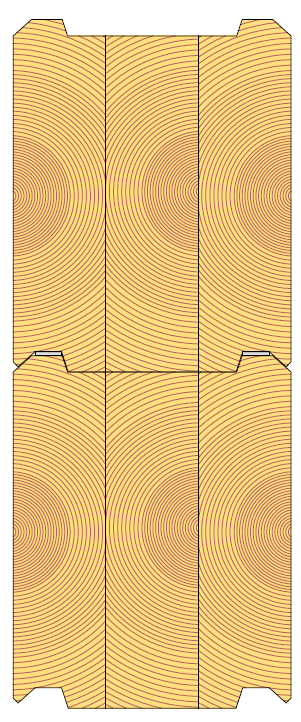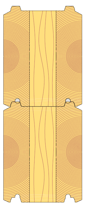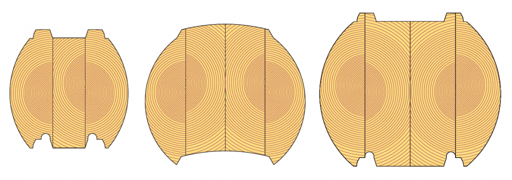 Laminated logs are glued together from two or more wood ‘planks’ with vertical, horizontal or cross joints.