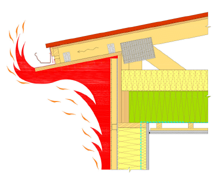 With wood structures, fire-resistance periods of 30, 60, 90 and 120 minutes can be achieved comparatively easily. The required structural fire-resistance period is achieved with structural protective cladding – usually plaster board – and also by giving wood structures added size to take charring into account. In a fire, the absorbed moisture in a plaster board evaporates, keeping the board’s temperature low on the side opposite the fire, which prevents the wood from igniting. Cavities in the structure can be filled with non-combustible insulation material, which protects the wood structures and slows down the charring of the wood.