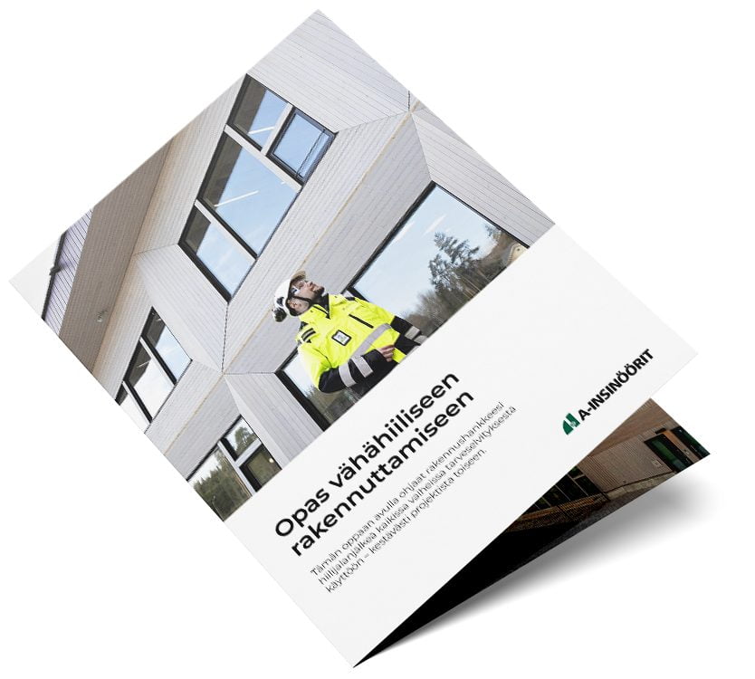 Oppaan (A-Insinöörit 2021) avulla jokainen kiinteistönomistaja, rakennuttaja ja rakentamisen asiantuntija voi olla vähähiilisen rakennuttamisen mestari omassa hankkeessaan. Opas antaa selkeät ohjeet hiilijalanjäljen ohjaamiseen hankkeen eri vaiheissa, tarveselvityksestä varsinaiseen käyttöön.