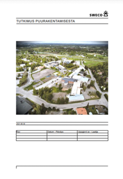 Selvityksessä (FCG 2021) käsitellään massiivipuu- ja hirsirakentamisen tekniikoita ja kustannuksia sekä yhdyskuntasuunnittelun prosesseja puurakentamisen näkökulmasta. Raportissa myös tunnistetaan keinoja, joilla puurakentamista voidaan parhaiten edistää yhdyskuntasuunnittelussa. Raportissa käsitellään suunnitteluttamisen, kilpailuttamisen ja rakennuttamisen menetelmiä siten, että yleisesti hyvien käytäntöjen lisäksi tunnistetaan massiivipuurakentamiseen liittyviä erityisnäkökohtia.