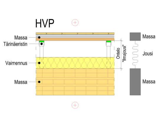 Huoneistojen välisessä välipohjassa (HVP) pätee samat äänitekniset periaatteet kuin edellä mainitussa huoneistojen välisessä seinässä. Välipohjassa levymäiset massat muodostetaan kansirakenteella ja esimerkiksi akustisten jousirankojen varaan asennetulla kipsilevytyksellä.
