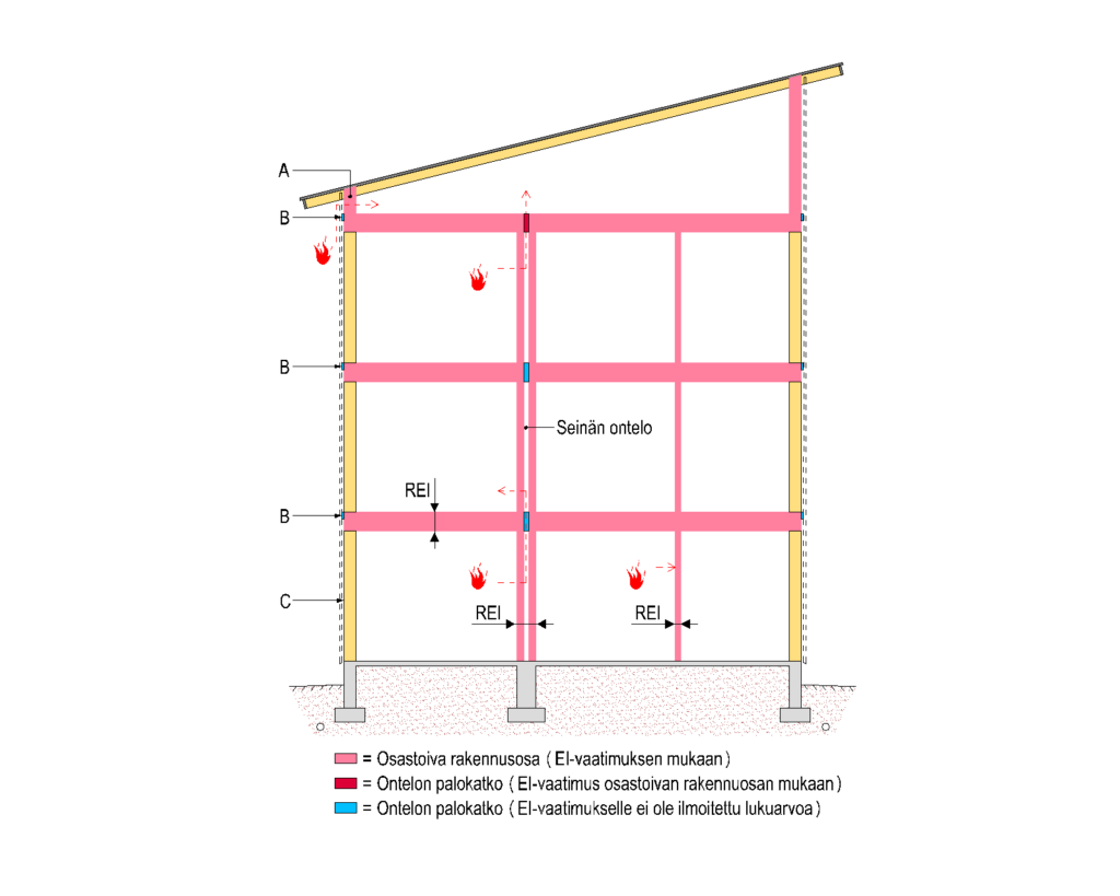 Mikäli tällaiseen rakennukseen tehdään palosuojakäsitelty vähintään B-s2, d0-luokan puujulkisivu tai muu B-s2, d0-luokan täyttävä julkisivu, ei edellä mainittuja palokatkoja tarvita.