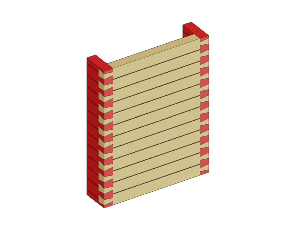 Jotta hirsiseinä voi toimia kantavana seinänä, tulee sen päissä ja aukkojen pielissä olla jäykisteet. Jäykisteinä käytetään tavallisesti poikittaisia hirsiseiniä/seinän osia, erillisiä pilastereita (följäreitä) ja aukkojen pielissä karapuita. Jäykisteiden suunnittelussa tulee kiinnittää huomiota seinän mahdolliseen painumaan. Hirsiseinän nurjahduskestävyyttä voidaan kasvattaa hirren leveyttä suurentamalla. Kantavassa hirsiseinässä aukkojen pielissä tulee aina olla riittävästi leveysmittaa B (ks. alla oleva kuva).