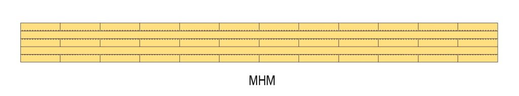 MHM-levy on CLT-levyn kaltainen tuote, mutta MHM-levyssä päällekkäiset lautalevykerrokset liitetään toisiinsa alumiininauloilla. MHM-levyn valmistuksessa ei siis käytetä lainkaan liimaa.