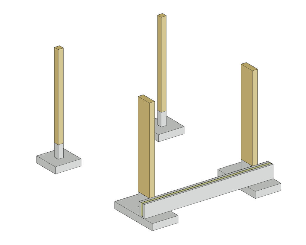 Kaikkien kantavien pilareiden alla tulee olla antura, jotta runko saadaan painumattomille tuille. Tavallisesti pilareiden kuormitustaso on niin suuri, että pilareita ei voida järjevästi perustaa esimerkiksi betonipalkin varaan. Mastopilareita käytettäessä tulee varautua siihen, että anturoista tulee suhteellisen suuria. Tämä johtuu siitä, että puurungossa ei ole merkittävää omapainoa (vrt. betonirunko) vähentämään pilarianturaa kaatavaa momenttia.