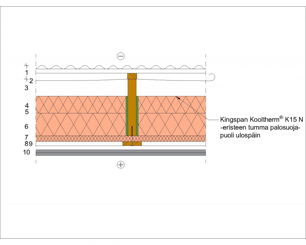 | YP 1.1 Energiatehokkuus 33§ | Kooltherm® K15 N 120 mm + Kooltherm® K12 120 mm rungon välissä Kooltherm® K12 70 mm yhtenäisenä kerroksena | 0,07 |