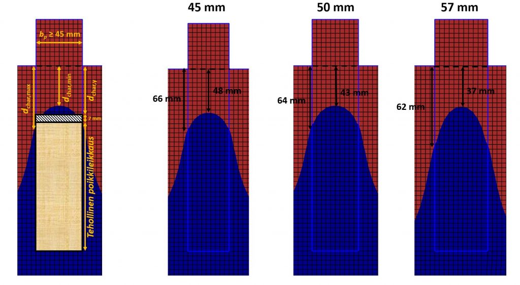 Palomitoituksessa käytettävä hiiltymissyvyys sekä jäännöspoikkileikkauksen ja tehollisen poikkileikkauksen määritys on esitetty lausunnossa [1].