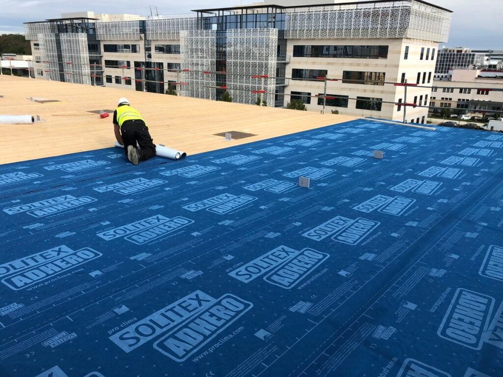 Rakennusosakohtainen kosteussuojaus on aina osa kosteudenhallintaa. Rakennusosakohtaista kosteussuojausta tarvitaan aina kuljetusten aikana ja jollain tasolla myös asennuksen aikana, vaikka rakennuksen päällä olisi ST2-luokan suojaus. Tyypillisesti rakennusosakohtaista kosteussuojausta on tehty muovi- ja pressusuojauksella, mutta tähän on nykyisin myös uusia tuotteita. Kuvissa 16 ja 17 on esitetty polypropeenista valmistettu itseliimautuva mikrokuitukangas. Kyseisen tuotteen etuja ovat seuraavat: