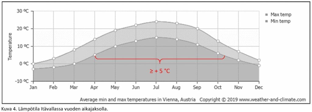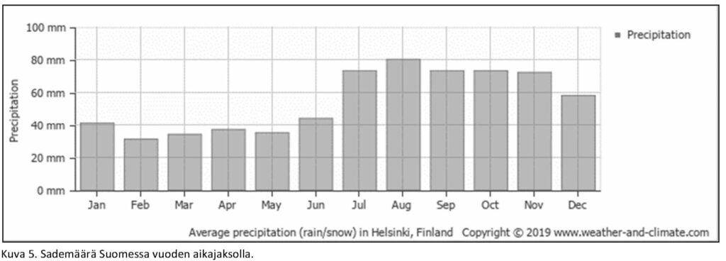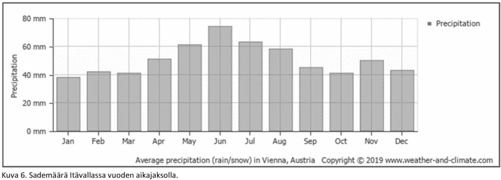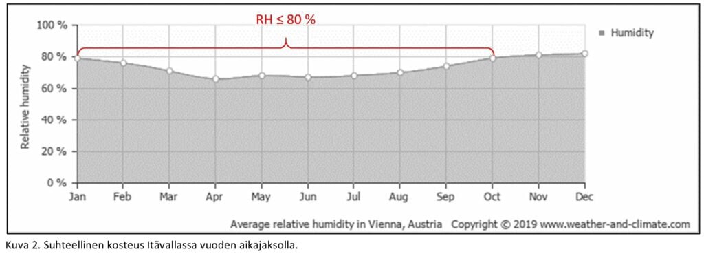 Rakennuksen kosteudenhallintaa suunniteltaessa tulee aina kiinnittää huomiota paikallisiin ilmasto-olosuhteisiin. Sääsuojaamaton rakennustapa, jota käytetään esimerkiksi Keski-Euroopassa, ei tavallisesti sovellu ilmasto-olosuhteistamme johtuen käytettäväksi Suomessa. Kuten seuraavista kuvista havaitaan, poikkeaa esimerkiksi Itävallan kosteus- ja lämpötilaolosuhteet huomattavasti Suomen olosuhteista.