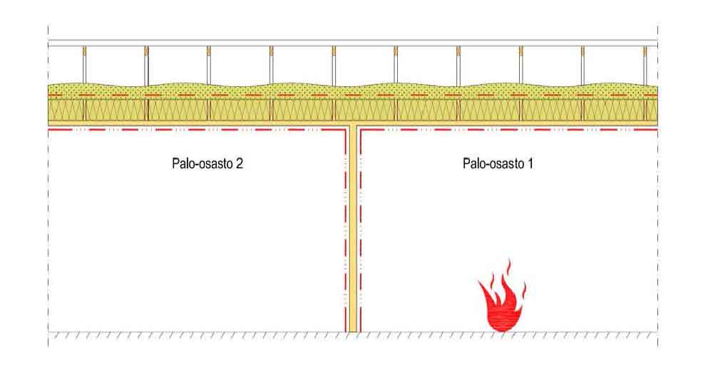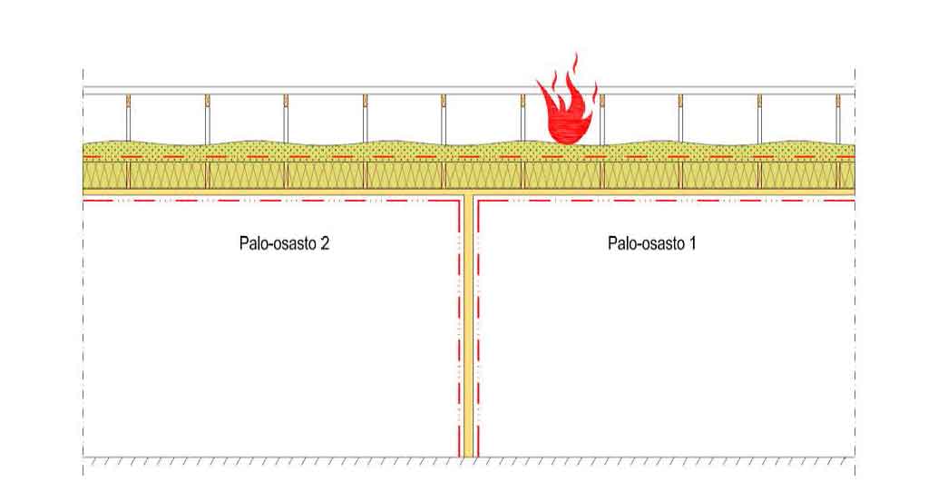 Ullakkopalossa oletetaan, että yläpaarteen tasossa olevat rakenteet sortuvat (mikäli eivät ole palotilanteessa kantavia tai jäykistäviä rakenteita) ja yläpohjan kantavuus mitoitetaan pelkästään alapaarteen tasossa olevien rakenteiden varaan. Paarteiden välissä olevat levymäiset palosuojaeristeet suojaavat alapaarteen kylkiä hiiltymiseltä. Mahdollista puhallusvillaa ei huomioida palomitoituksessa.