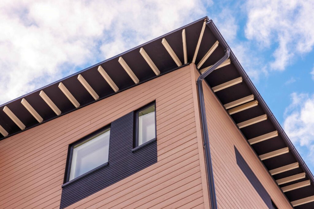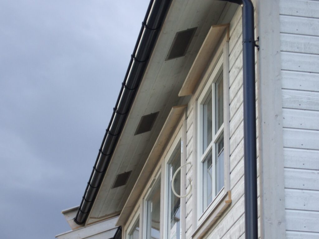Kuva 4. Paloräystäs toteutettuna räystään alapinnassa olevalla osastoivalla LVL-levyllä