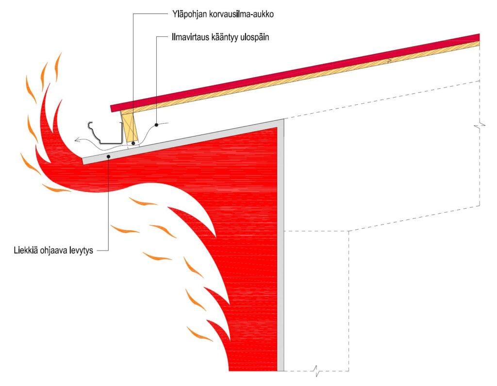 4.1 Liekinohjain räystään alapinnassa