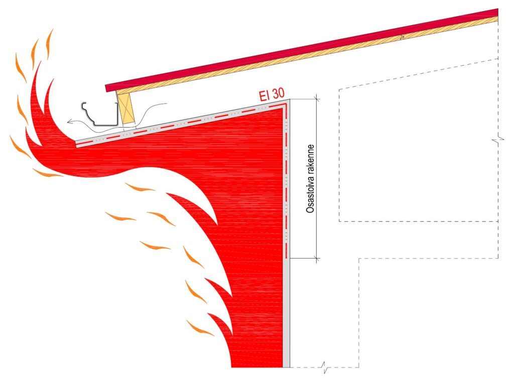 • palon leviäminen julkisivusta ullakkoon ja yläpohjaan on estetty EI 30-rakenteella,