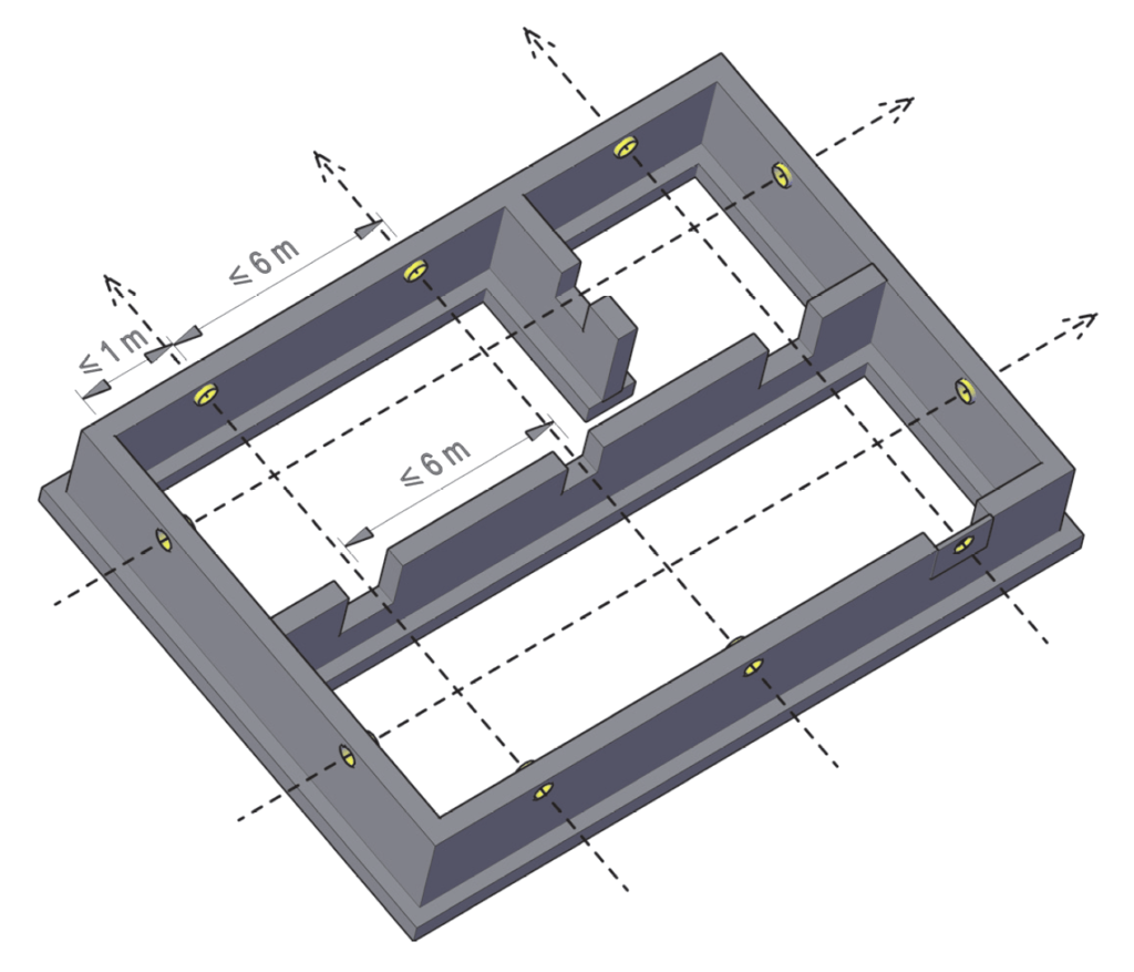 Ulkoilmaan rajoittuviin tuuletusaukkoihin voidaan asentaa metallista valmistettu säleikkö estämään pieneläinten pääsy tuuletustilaan. Tuuletusaukoissa voidaan käyttää myös sinkittyä teräsverkkoa, jonka silmäkoon tulee olla vähintään 4…6 mm. Silmäkooltaan pienempi verkko saattaa tukkeutua ilmassa olevista roskista. Tuuletusaukossa olevan verkon ja/tai säleikön vaikutus aukon pinta-alaan huomioidaan pienennys-kertoimella, joka saadaan taulukosta 3. Tuuletusaukot sijoitetaan kuvan 3 periaatteella samalle virtauslinjalle siten, että alapohjaan ei jää tuulettamattomia kohtia. Perusmuurissa olevat tuuletusaukot tulee sijoittaa siten, että tuuletusaukon alareuna on vähintään 150 mm ympäröivän maanpinnan yläpuolella eikä perusmuurin vieressä oleva mahdollinen kasvillisuus tuki aukkoja.