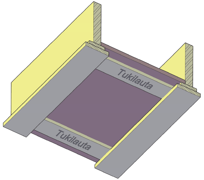 Kuva 2. Tuulensuojalevyn tuentaperiaate palkkirakenteisessa alapohjassa.