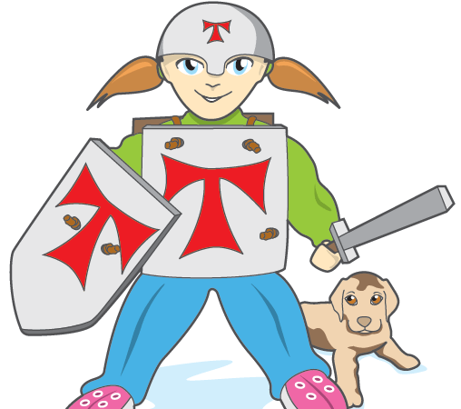 Valmista kilpi ja haarniska vanerilevystä. Kilven takapuolelle kiinnitetään nahkainen kahva, jonka voi valmistaa vaikka vanhasta vyöstä. Vyötä voi käyttää myös haarniskan olka- ja vyötärönauhoihin. Hauskin vaihe on kilven ja haarniskan maalaus. Voit antaa mielikuvituksen lentää ja koristaa ne juuri sellaisilla kuvioilla kuin haluat. Ethän tee miekasta liian terävää. Tarkoitus ei ole satuttaa ketään, vaan pitää hauskaa yhdessä.