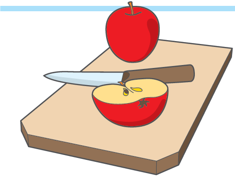 Leikkuulauta hedelmien, leivän tai vihannesten leikkaamiseen.