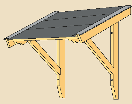 Yksinkertaisempi katos, joka asennetaan vinosti seinää vasten. Se rakennetaan kuten muut mallit. Vesikatto kiinnitetään suoraan kannatinkonsoleihin ilman kattotuoleja.