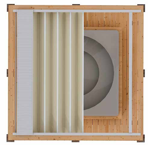 Kesähuoneessa kantava rakenne on muistuma puun rungosta. Se luo tunnelmaa puiden ja niiden lehvästöjen tarjoamasta suojasta. Jacuzzille antaa suojaa moottorilla liikuteltava katos. Se suojaa allasta sateelta ja kylpijöitä polttavimmilta UV-säteiltä. Avaamalla katon kokonaan jacuzzissa kylpijät voivat ihailla tähtitaivasta ”puiden” suojasta. Runkoon voi ripustaa myös verhoja näköesteeksi ja koukut kylpijöiden pyyhkeille. Kesähuoneen runko on tehty 115 mm x 115 mm liimapuusta. Liitokset on tehty ruuveilla. Lattialankut ovat lehtikuusta. Perustus on tehty pilariperustuksille.