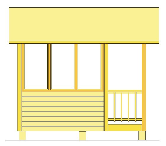 Kuistin lattia ja kaide, pystyleikkaus / pääty (oik.)