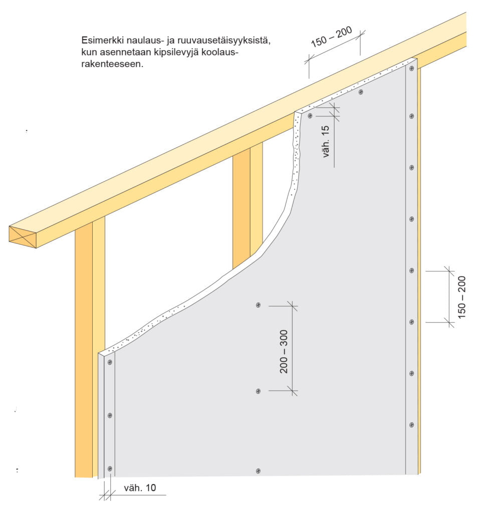 Kipsilevyt voi myös kiinnittää puurakenteisiin kipsiruuveilla, joiden pituus on 30 yhtä levykerrosta ja 41 kahta levykerrosta varten.
