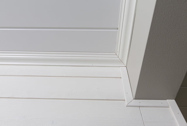Listat sahataan kulmissa jiiriin ennen asennusta. Varaa siksi aina hieman ylimääräistä sahausvaraa suunnitellessasi ja ostaessasi listoja.