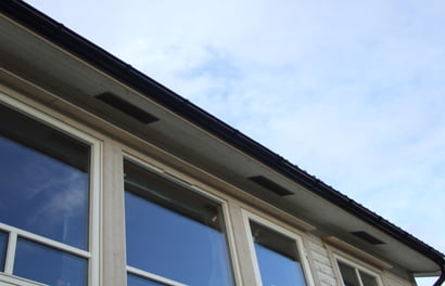 Firebreather-räystäsventtiili oikein asennettuna estää palon leviämisen räystään tuuletusrakoja pitkin.