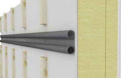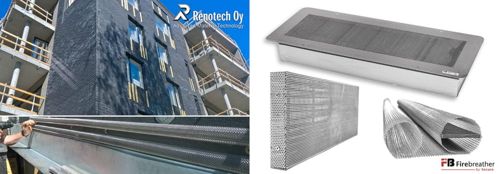 Firebreather-onteloventtiiili asennettuna julkisivun tuuletusraossa pysäyttää palon etenemisen seinärakenteissa.