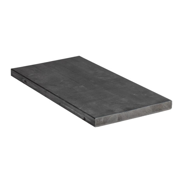 Kuvan laudekokonaisuuden runkopuu ovat käsitelty mustalla saunavahalla. Mallin runkopuuna on höylätty kuusi 45 x 70 mm. Runkopuun kokoa voi kasvattaa, esim. 45 x 95–145 mm, riippuen mittasuhteista.
