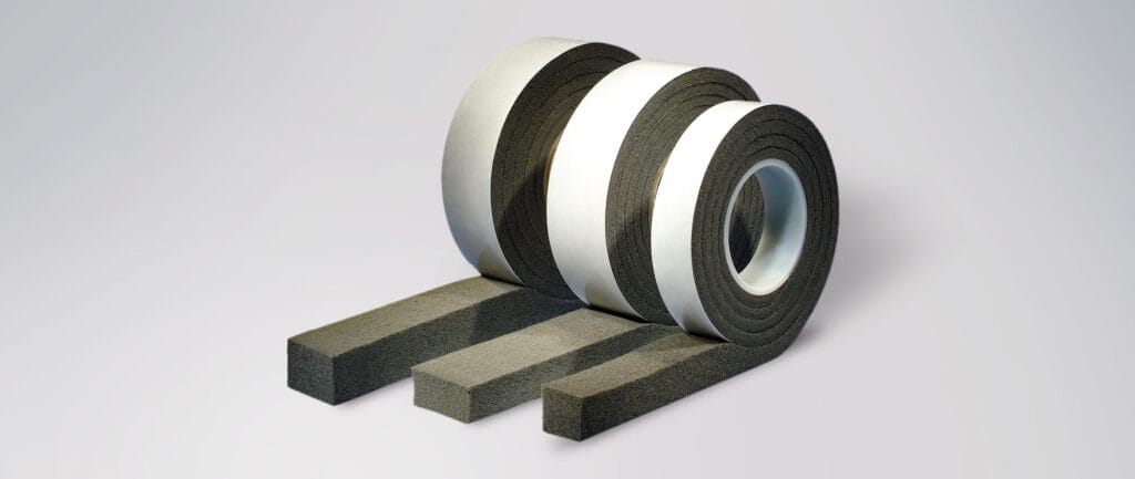 ISO-FLAME KOMBI F120 on erityisellä, erittäin tulenkestävällä impregnoinnilla varustettu PU-tiivistenauha palosuojasaumoihin.